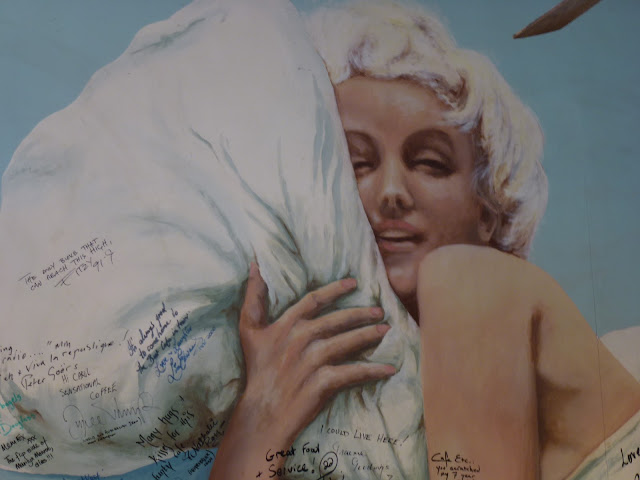 Coffee shops play a big part in our daily culture. This place is a Marylin Monroe fan's dream come true! Situated in Jetty Road, Brighton, South Australia...a fun place to have coffee, cake and view the life of Norma Jean. A customer autographed mural on one wall and dozens of photographs of her on the other...even on the back of every chair, she's the woman of every moment here. :))